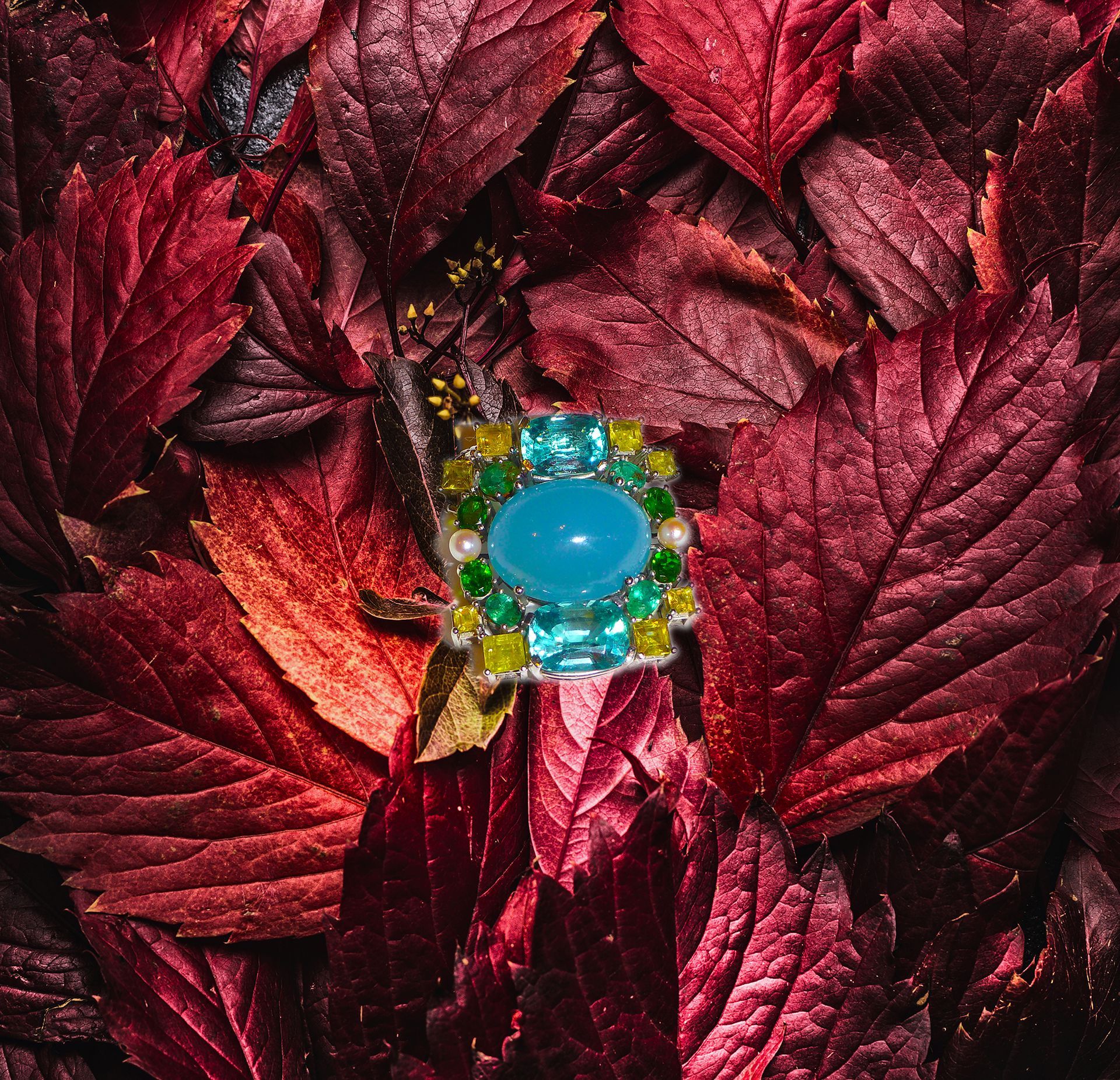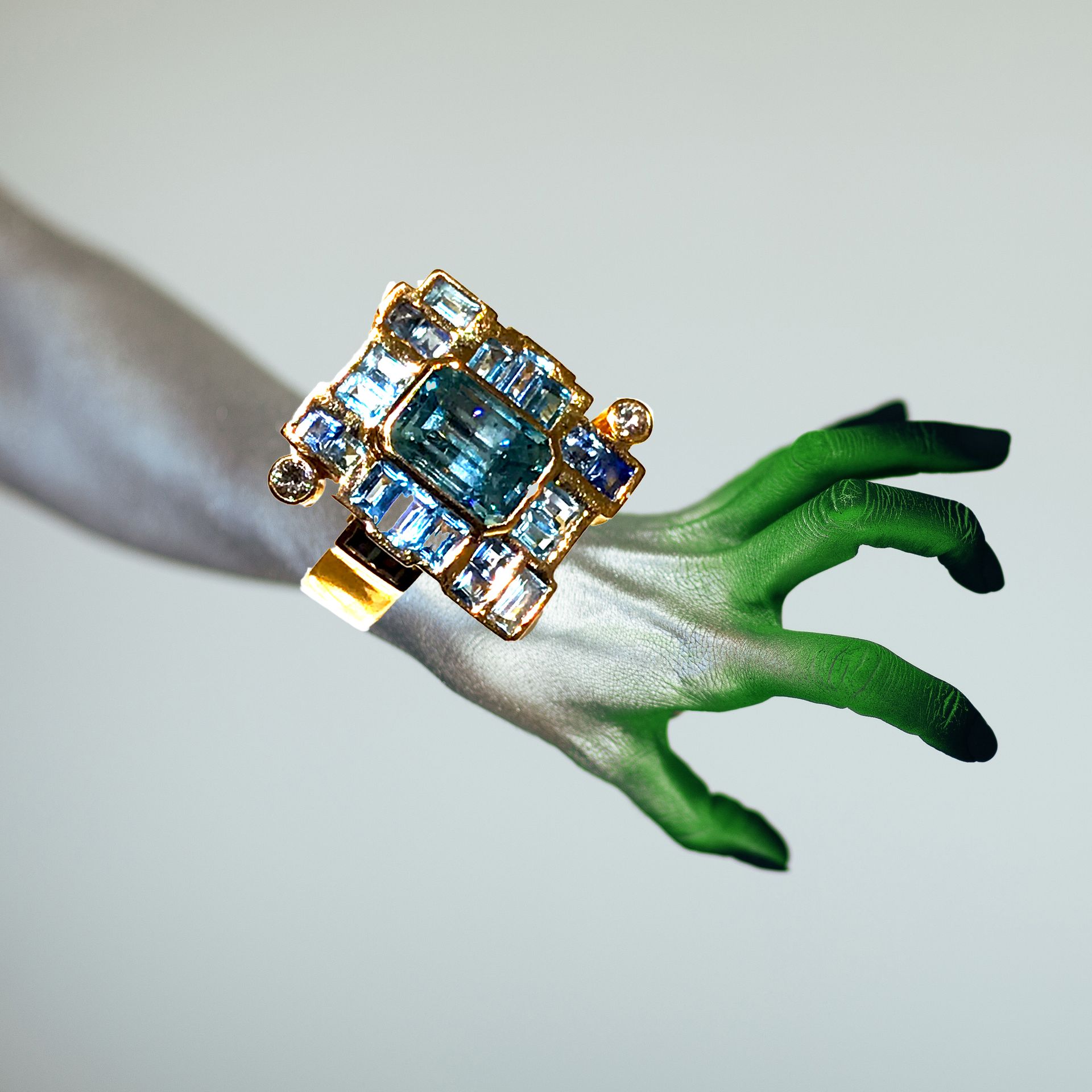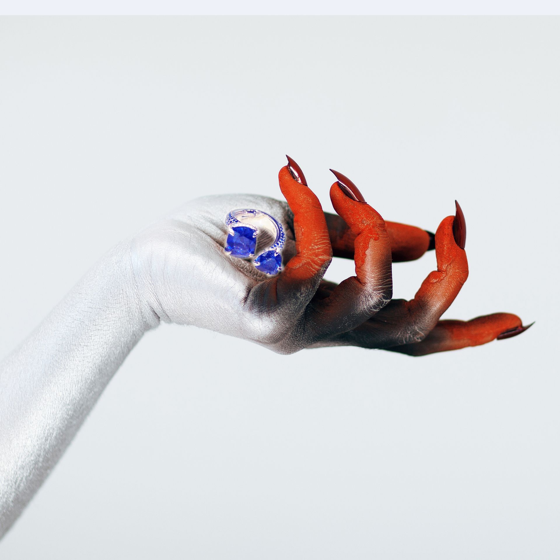 Everything I do in art is instinctive, intuitive, under a state of subconsciousness that I try to achieve while working. In jewelry design, through the gems and their beauty essence I conceive around them the metal construction process. Another completely different process in painting, when I don't study anything, everything comes from a meditative state of mind. Free healthy mental mindset. But I shouldn't talk about my work. Because it is an intellectual passage about a process of extreme intuition and absolute freedom, finding the elegance in the minimal hypothetical gestalt.